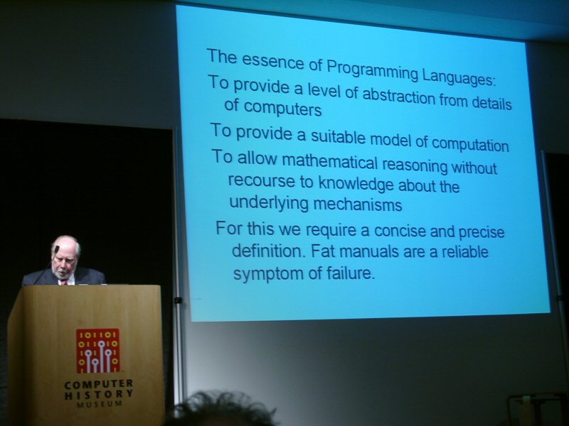 Wirth was asked after the lecture what he thought of the rise of C/C++. He said he was very glad that subject had not come up during the Q&A period, which I think says it all. I asked him how he felt about the computing professions move away from type safe languages like Pascal to languages like C/C++. He replied that he believed the profession was moving back in the other direction, via languages like Java and C#.